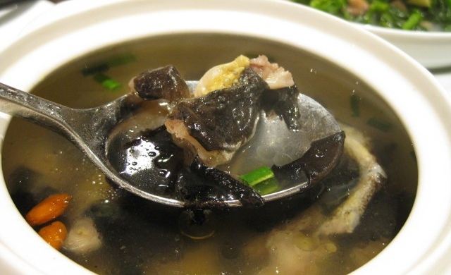 黃山雙石: 黃山雙石也是一道傳統(tǒng)的徽州菜肴。因其選用徽州當(dāng)?shù)靥厣氖褪u為食材加工、烹飪,故被稱為“雙石”。做法:將石雞宰殺后清理干凈,放鹽抹勻,加入紅薯粉上漿,再放入開水中脫生,排去多余血水;將石耳洗凈去根,以溫水泡發(fā),用事先備好的高湯蒸十分鐘左右,再與石雞一起放入燉盅,加入生姜、蒜、少量白糖、高湯,慢火燉煮。